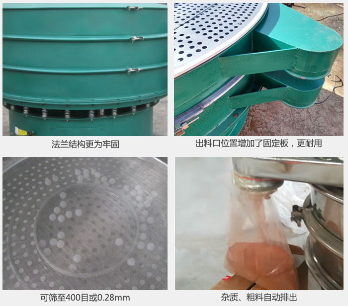 4,效率高、粉類、粘液均可篩分,雜質(zhì)、粗料自動排出。